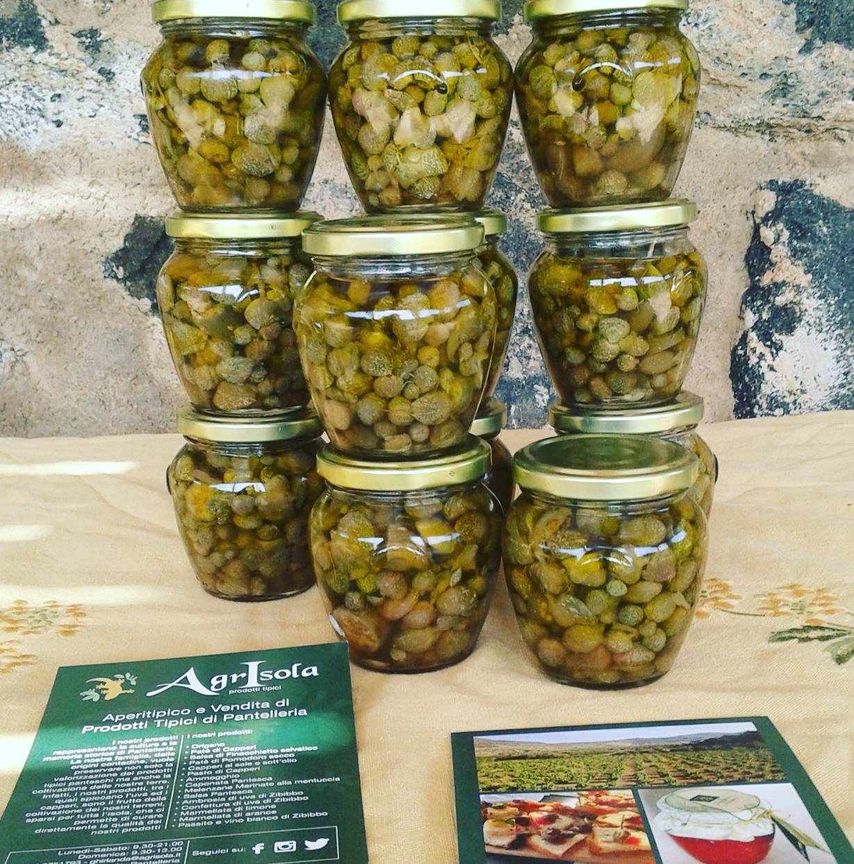 Proponiamo il nostro aperitipico,come quello del contadino, come una volta, descrivendovi e raccontandovi Pantelleria, tra il dolce e il salato, come è la nostra isola. Vi aspettiamo a Piana Ghirlanda nella località più magica e verde dell'Isola.