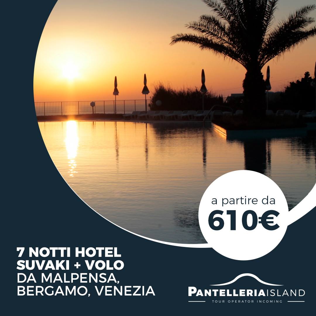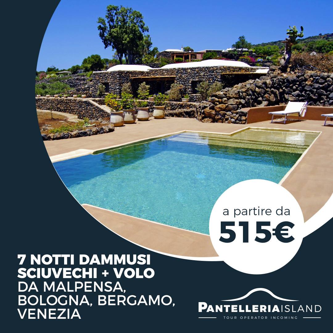 Chi sarà quindi interessato a passare un'indimenticabile vacanza a Pantelleria, non dovrà far altro che contattarci, per avere così la possibilità di scegliere la sistemazione turistico ricettiva che più si adatta alle proprie esigenze, optando tra pacchetti comprensivi di volo e alloggio oltre a servizi di escursioni naturalistiche via terra e marine, noleggi di auto, motorini e barche, visite enogastronomiche e culturali. Tutto questo sarà garantito dall'operativo incoming di Travel & Island, che si pone quale partner ideale per la vostra vacanza a Pantelleria.